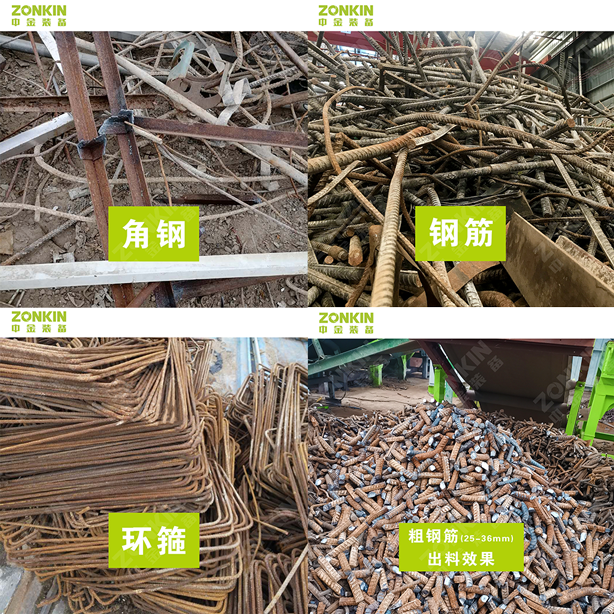 传统钢筋切粒机可将较直的钢筋加成工一定长度(如10cm)的钢筋颗粒,加工出来的钢筋颗粒深受钢厂欢迎,大部分废钢货场均有配备,但由于加工时需要人工将钢筋逐根放入钢筋切粒机,剪切过程可能还需要接触钢筋,导致不仅产量较低、人工成本高,而且安全隐患较大,根据笔者使用经验,经常出现安全事故。